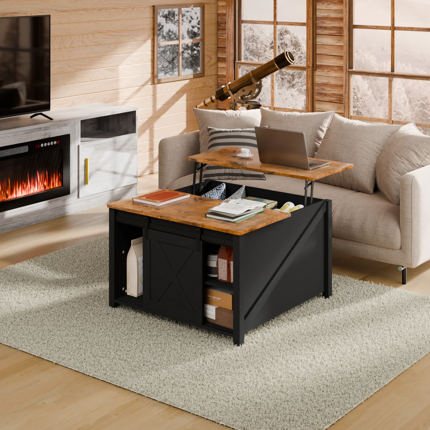 - Ample Storage: Includes a large hidden compartment under the liftable top for items like laptops and blankets, plus three open compartments with removable panels for frequently used items.
